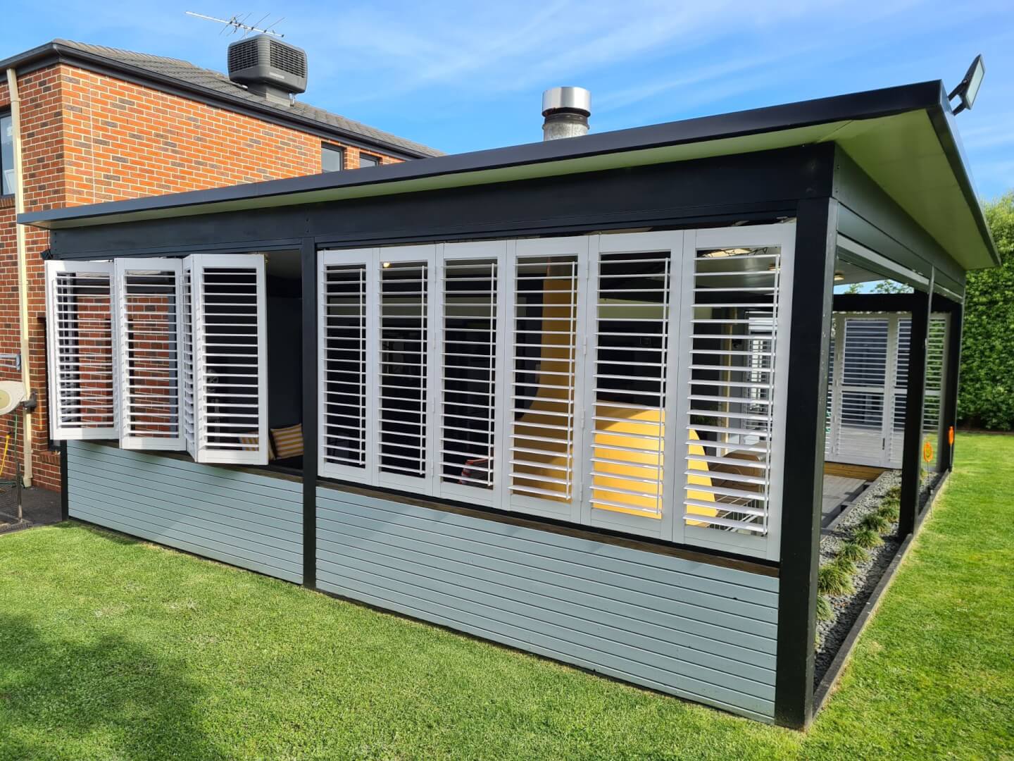 Aluminium Shutters are not only visually stunning to your alfresco or outdoor area they are functional with great light and privacy control.  With many different applications, colours, and styles we can customise them to suit individual applications.