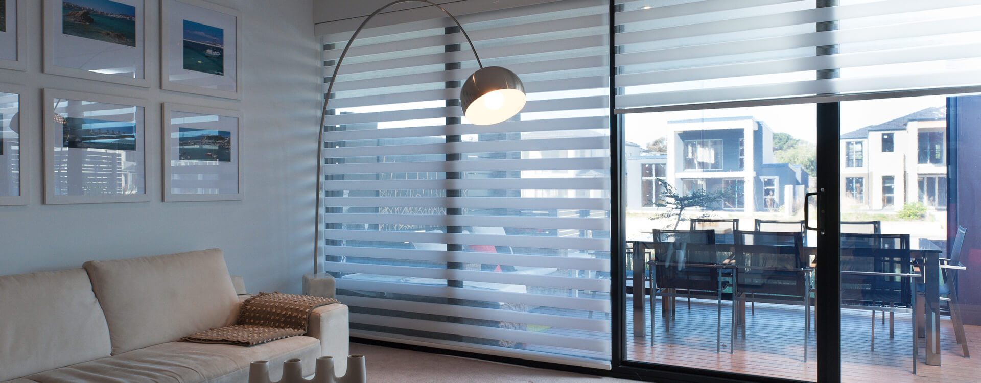 Sheerline is a unique roller blind system that features a distinctive fabric made up of alternating horizontal sheer and room darkening or translucent vanes.